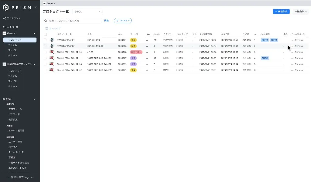- プロジェクト詳細画面の上部にあるタブから「BOM」を選択します。
